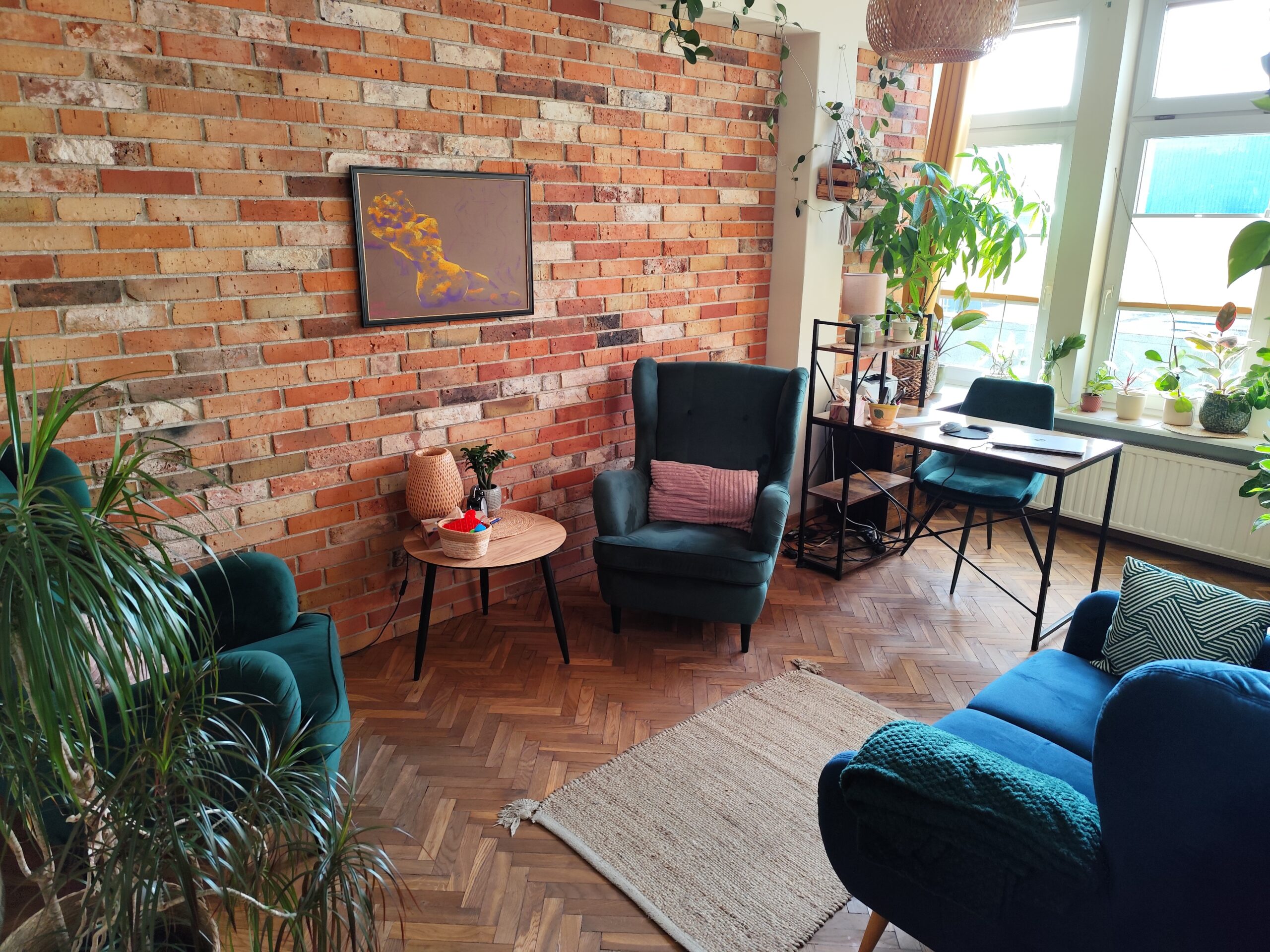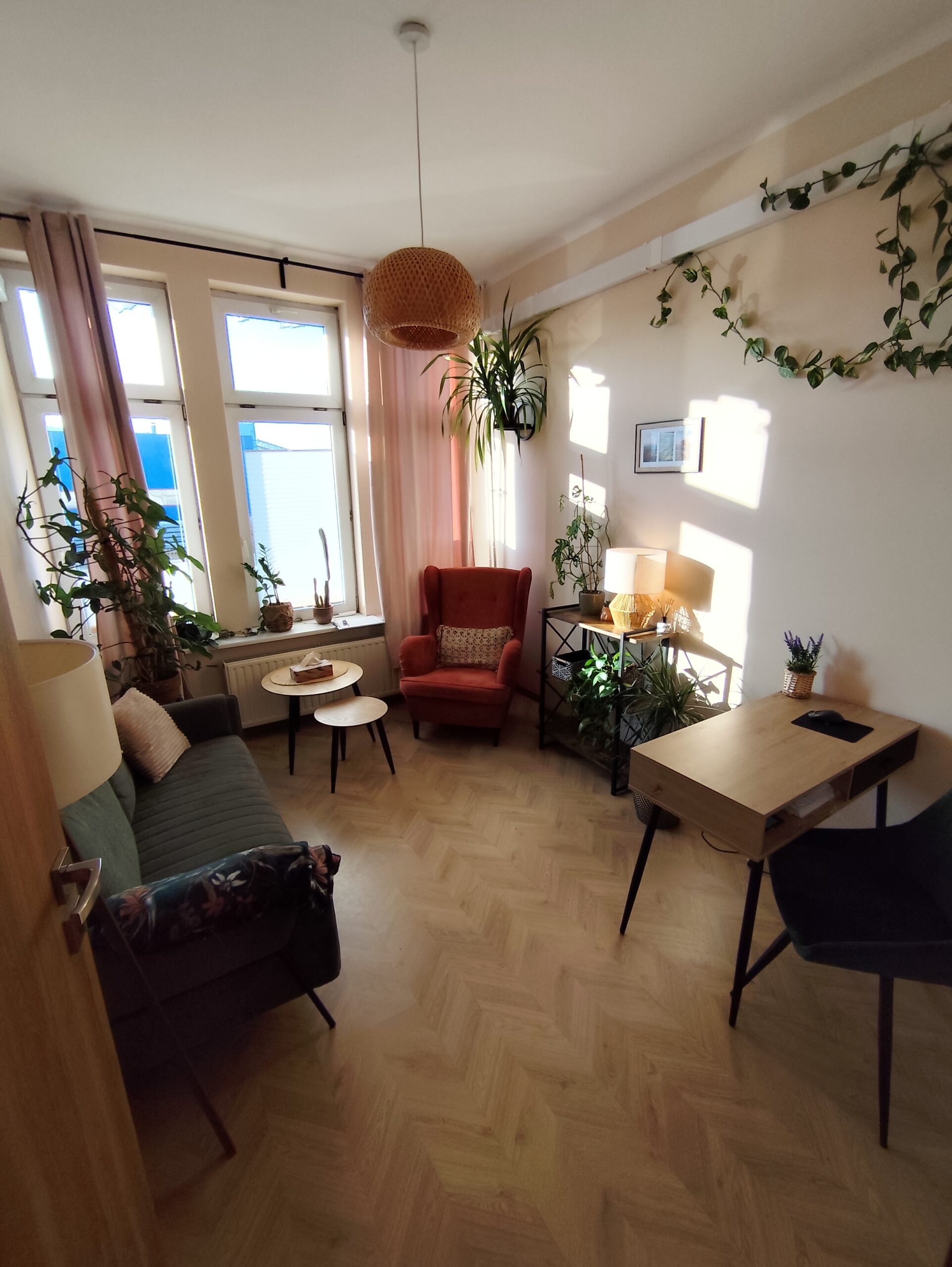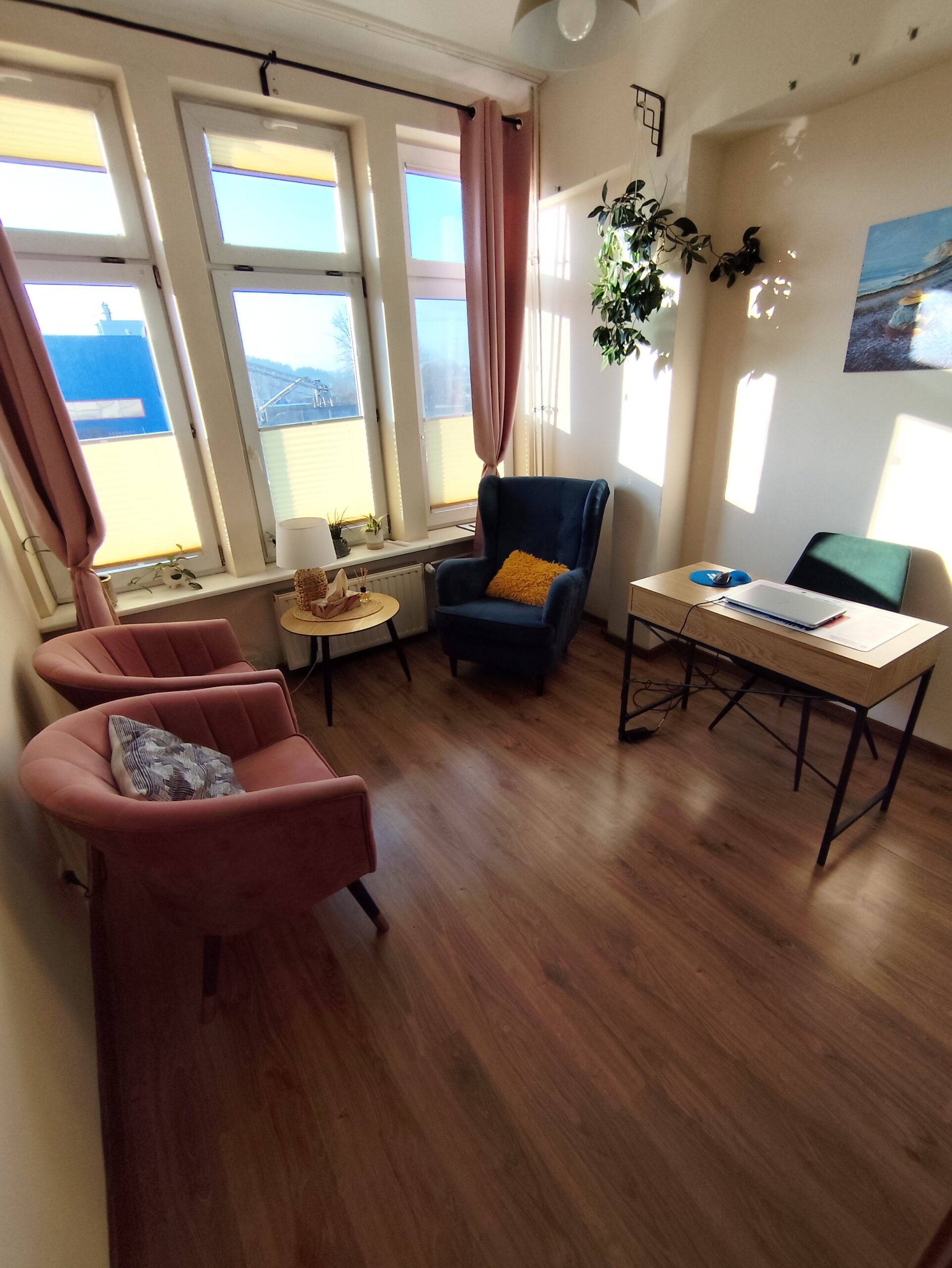 Każdy gabinet jest starannie urządzony i w pełni wyposażony. Przytulny wystrój sprzyja budowaniu komfortowej atmosfery oraz poczucia bezpieczeństwa, dzięki czemu praca i spotkania przebiegają w spokojnych, profesjonalnych warunkach.
