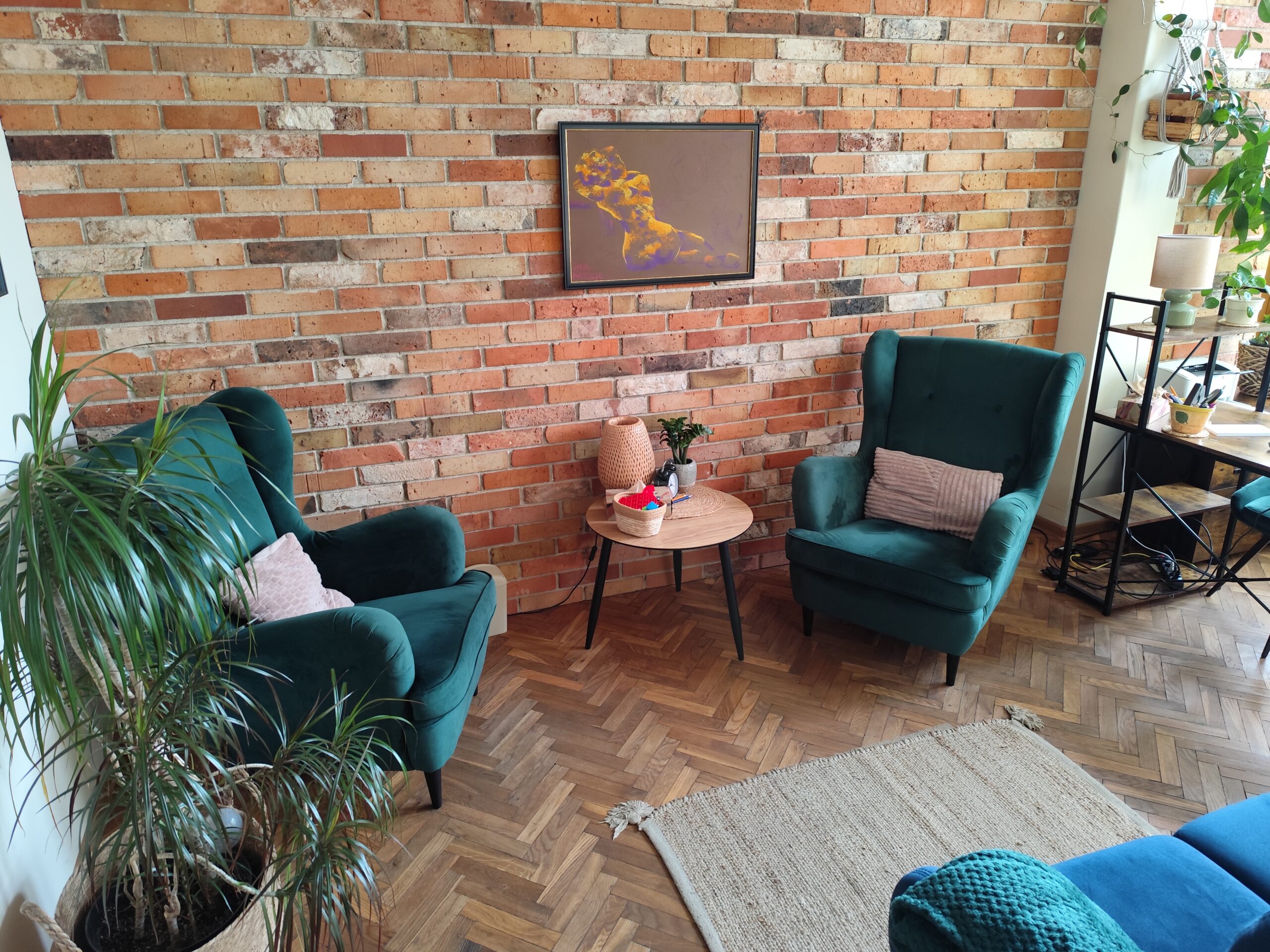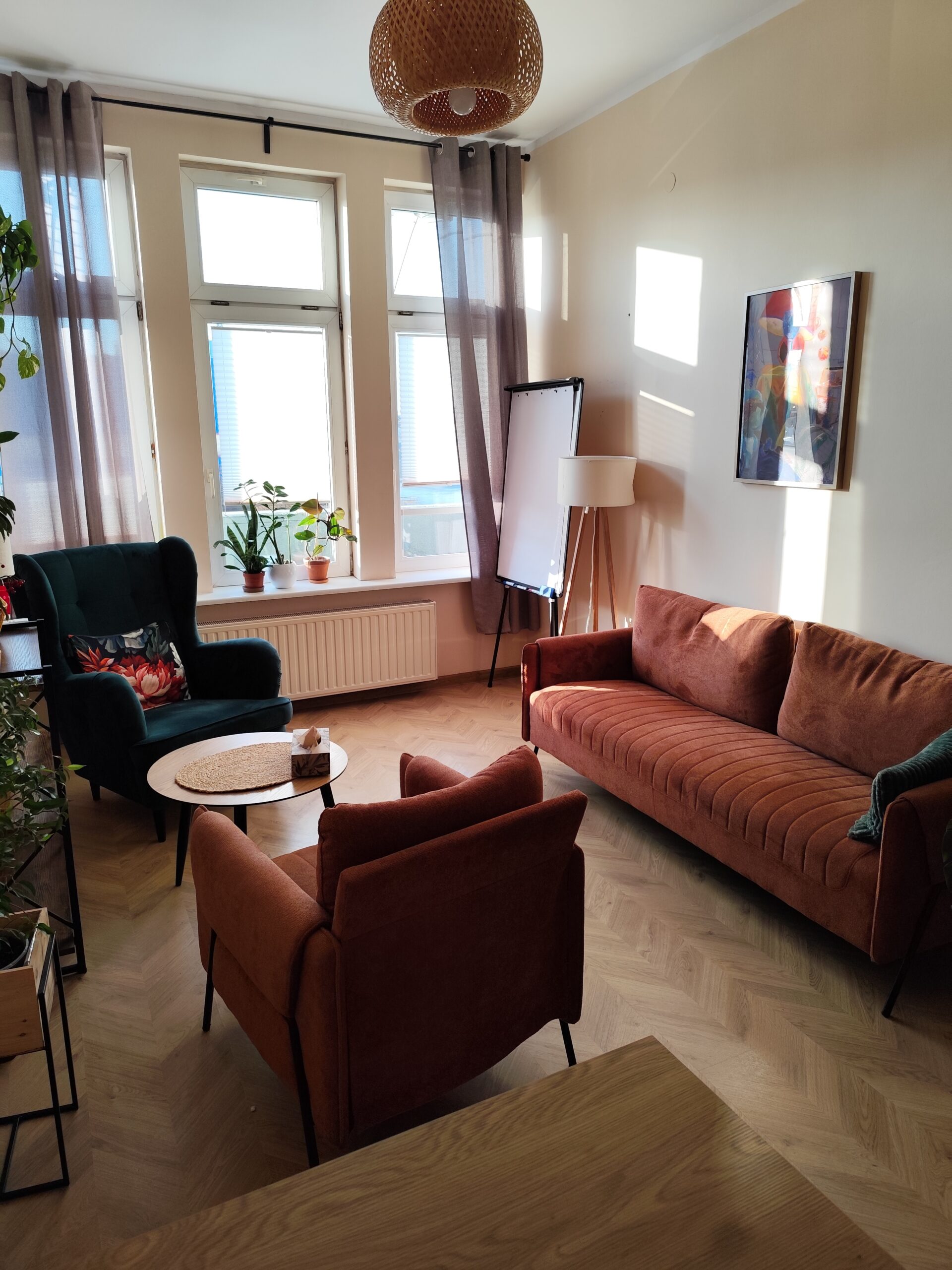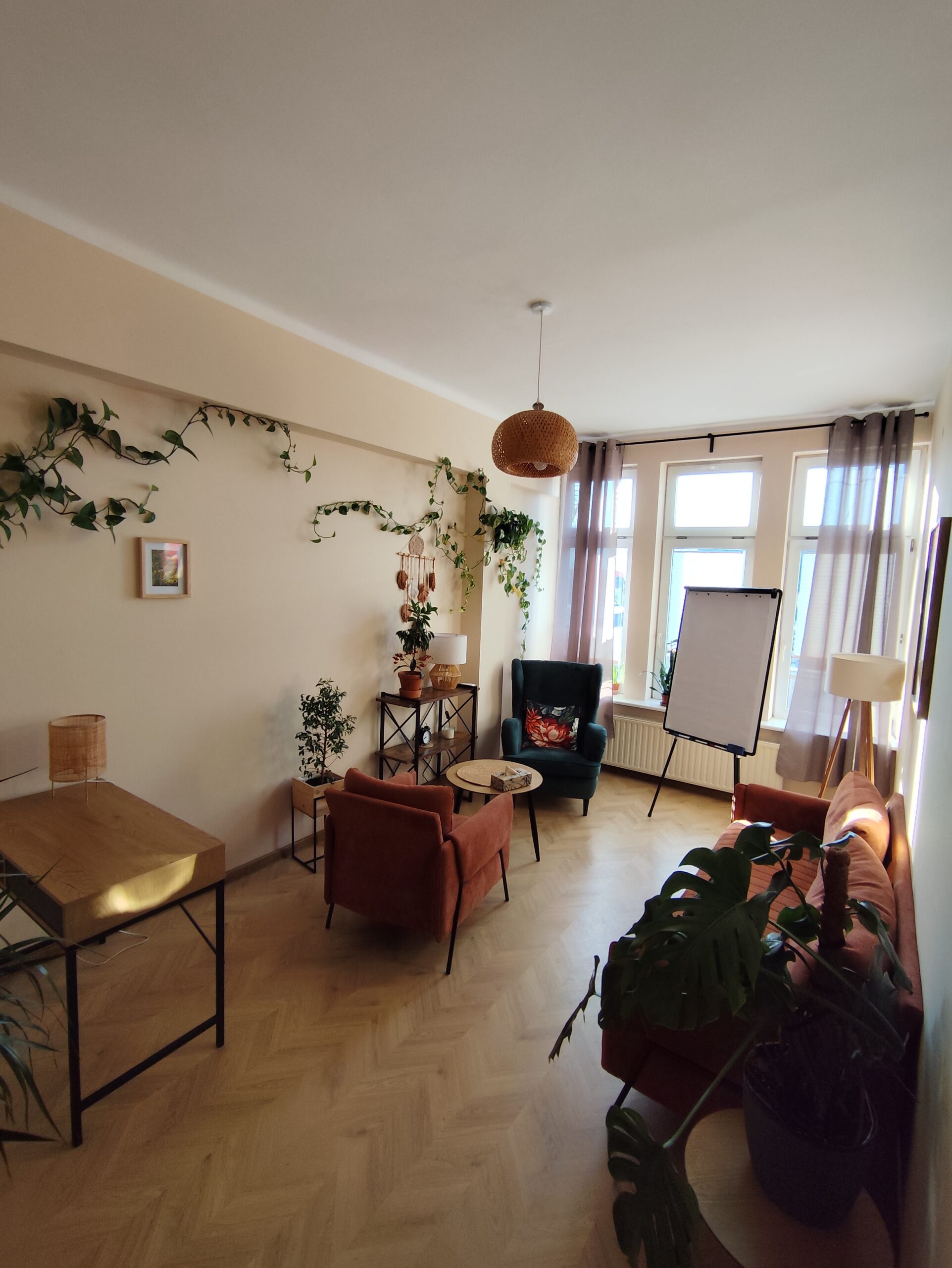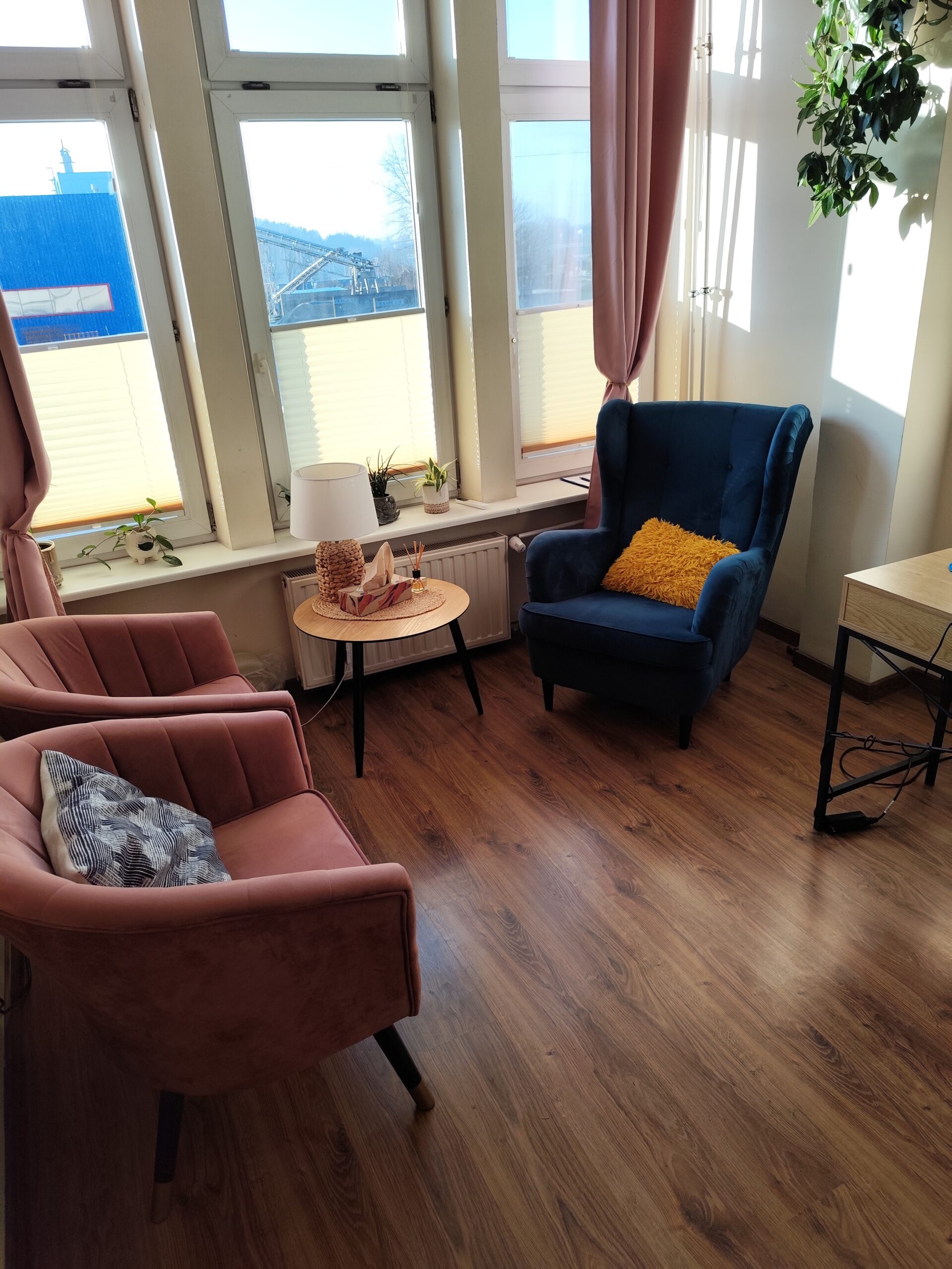 Każdy gabinet jest starannie urządzony i w pełni wyposażony. Przytulny wystrój sprzyja budowaniu komfortowej atmosfery oraz poczucia bezpieczeństwa, dzięki czemu praca i spotkania przebiegają w spokojnych, profesjonalnych warunkach.
